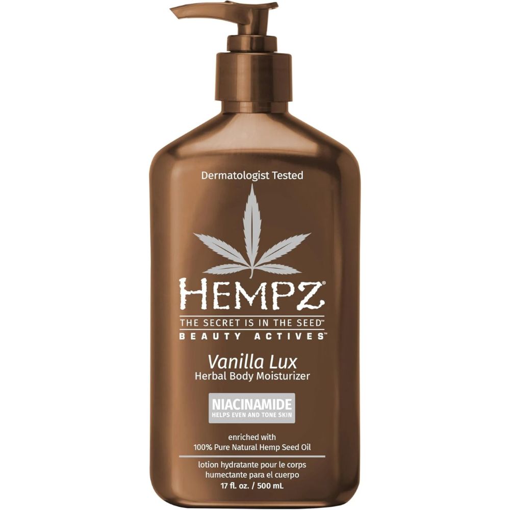 A body lotion enriched with 100% pure hemp seed oil and niacinamide — a conditioning ingredient that supports improved texture, hydration, and helps reduce the look of uneven tone and hyperpigmentation.