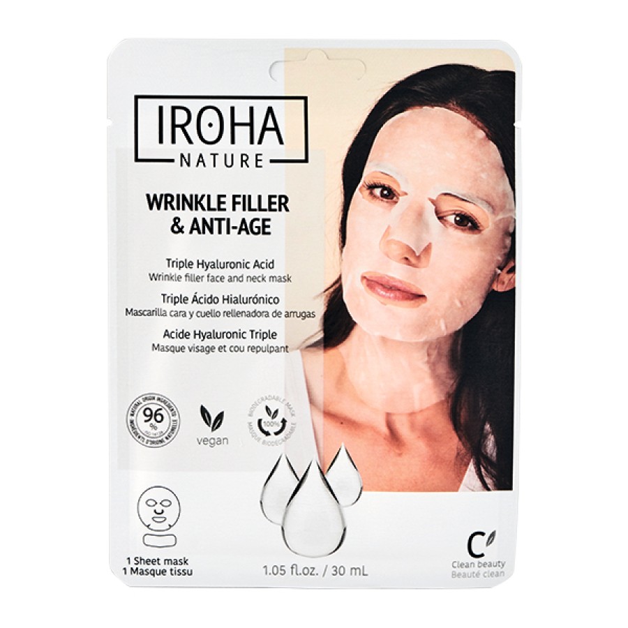 Iroha Nature sheet mask with filling and firming action that reduces expression lines and wrinkles. Visible results from the first application!