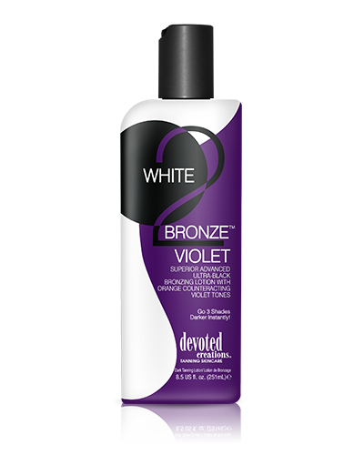 White 2 Bronze Violet™ – θα αποκτήσετε ένα αποτέλεσμα που δεν έχετε ξαναδεί Με σύνθεση με περισσότερους επιταχυντές, πιο σκούρο DHA και φυσικά bronzers θα σας επιτρέψουν να γίνετε 3 αποχρώσεις πιο σκούροι – αμέσως! Οι προστιθέμενοι βιολετί τόνοι θα σας βοηθήσουν να εξουδετερώσετε τους πορτοκαλί τόνους στο δέρμα, ώστε να έχετε σκούρα, μπρονζέ, αξιοζήλευτα αποτελέσματα – κάθε φορά! Αν θέλετε γρήγορα και μοναδικά αποτελέσματα μια είναι η λύση White 2 Bronze Violet™!